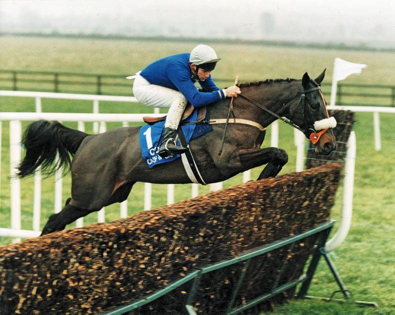Opera Hat, herself, was also purchased as a yearling but for a fraction of the money, shortly before Tom died. Her 15 victories in Valerie’s colours, and in the co-ownership of Carolyn Waters, included the Grade 1 Mumm Melling Steeplechase at Aintree, but she is best remembered for her sterling exploits at Naas where, against top company, she was successful on nine occasions.
