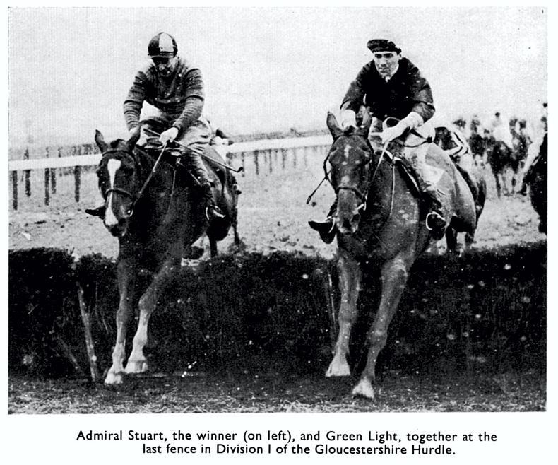 Well-armed now, the Irish ploughed into Vincent O’Brien’s Admiral Stuart in the opening Gloucestershire Hurdle on the Wednesday. As so often, the ever-dependable T.P. Burns delivered, earning a unique compliment from MV. ‘‘You rode him well, Tommy. He’s a very slow horse.’’