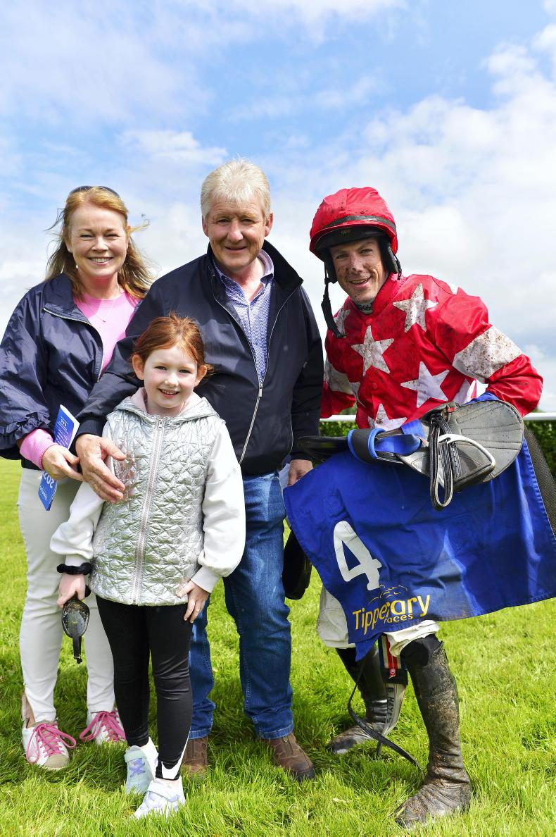 Good As Hell won at Tipperary for trainer Philip Fenton with wife Trish and daughter Caroline and winning jockey Brian Hayes \ Healy Racing