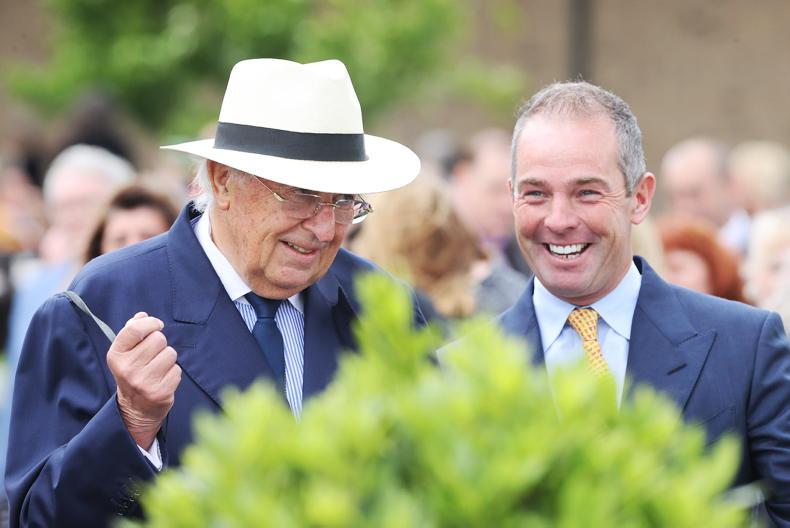 John Magnier enjoys a comment with Cian O'Connor at the Curragh \ carolinenorris.ie