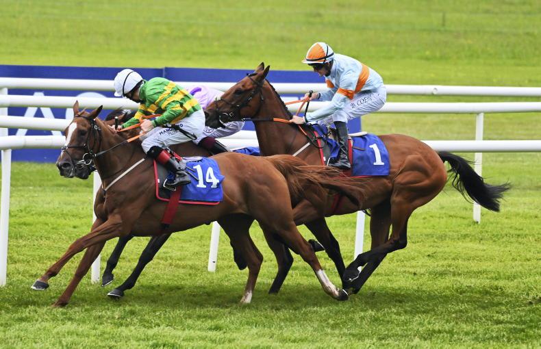 A tight finish at Roscommon as Glan and Declan McDonogh win the Colm Markey maiden \ Healy Racing