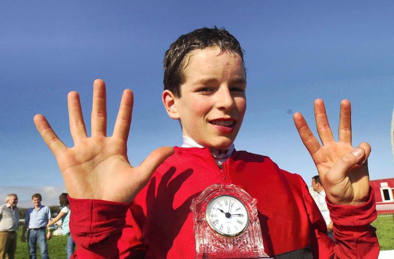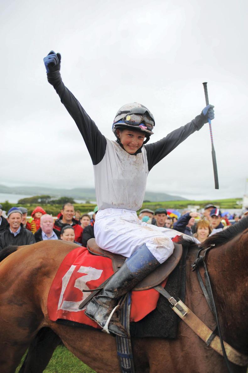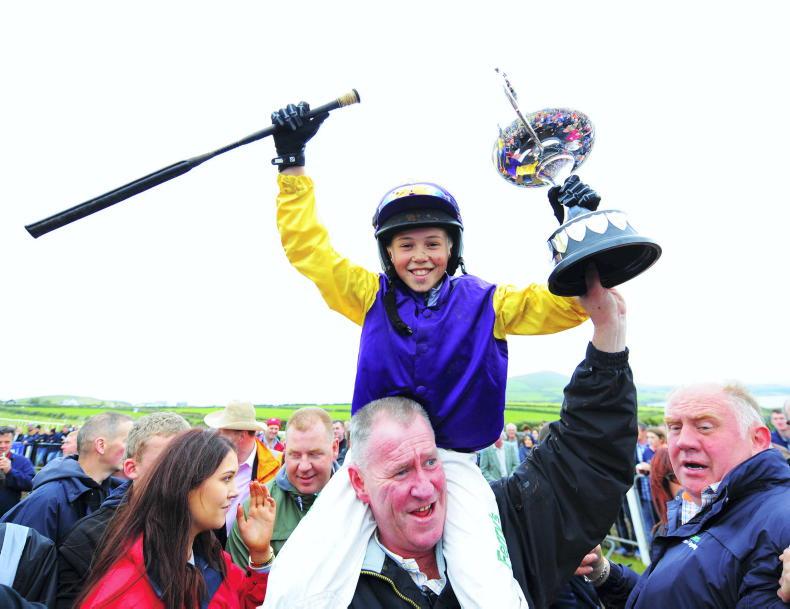 Dingle in 2012: 12-year-old jockey Darragh O'Keeffe after winning on Templehill Tamara with his cousin Dylan O'Connor \ Healy Racing