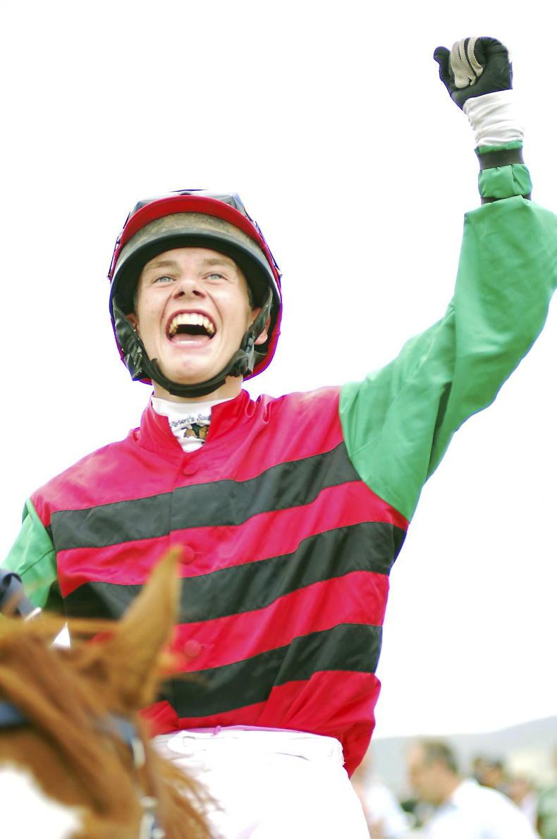 A 14-year-old Ricky Doyle celebrates winning the Dingle Derby in 2009 \ Healy Racing