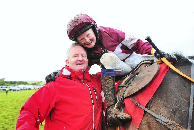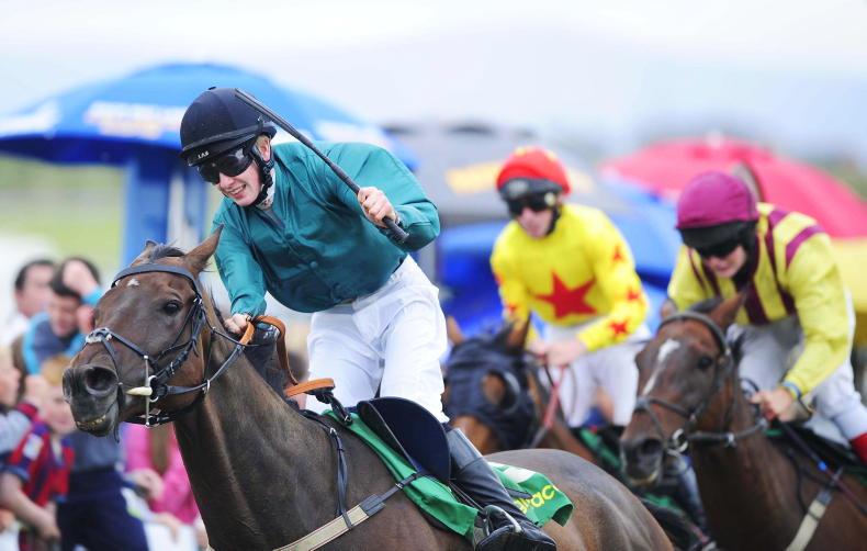Mr Bowen and Pat Taaffe after winning the 2016 Dawn Milk Dingle Derby, making all the running \ Healy Racing