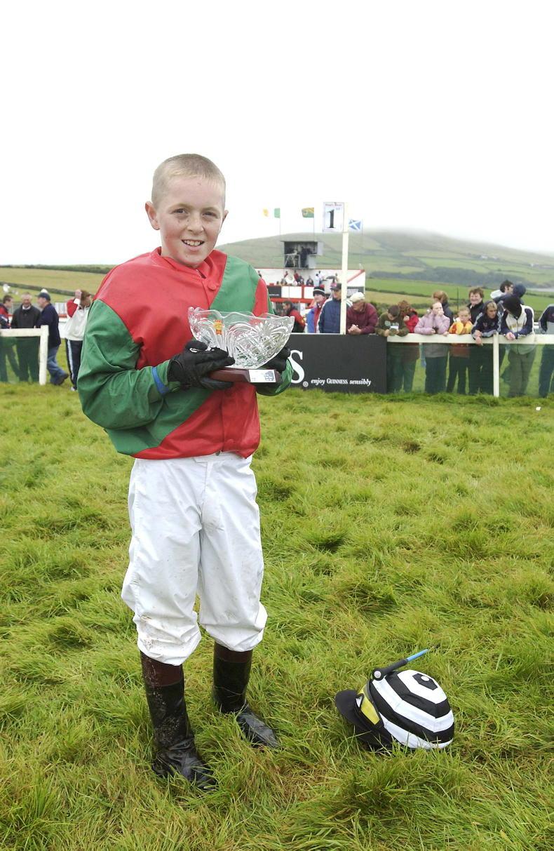 A 12-year-old Keith Donoghue after he rode Crazy World to win in 2005 \ Healy Racing