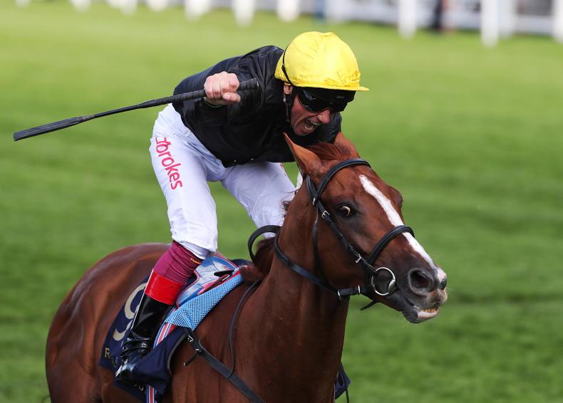Stradivarius and Frankie Dettori win at York for trainer John Gosden and collect a £1million bonus in 2018 \. Photo Healy Racing.