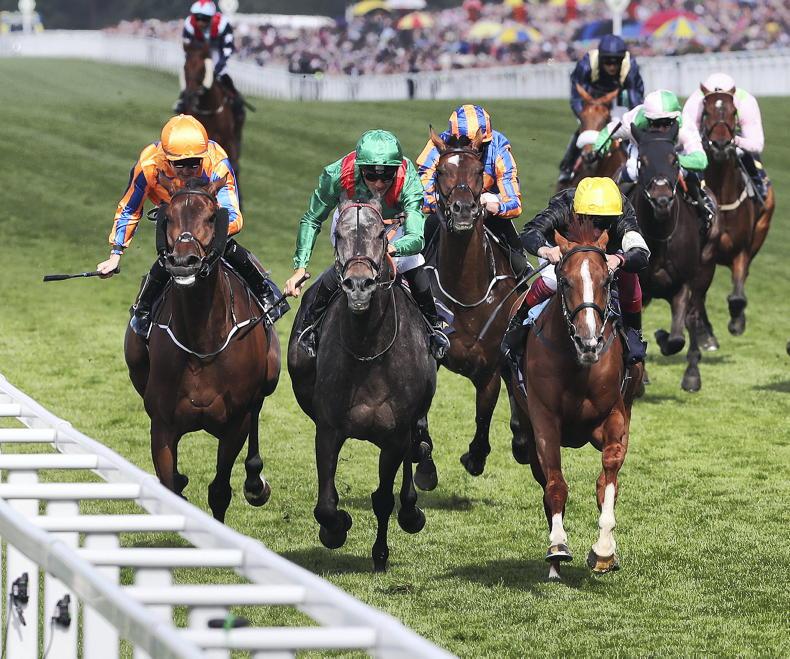 Royal Ascot, ThursdayJune 21st 2018 Stradivarius ridden by Frankie Dettori winning the Gold Cup from Vazirabad ridden by Christophe Soumillon, 2nd, Torcedor ridden by Colm O’Donoghue, 3rd, and Order Of St George ridden by Ryan Moore, 4th.\ Photo.carolinenorris.i