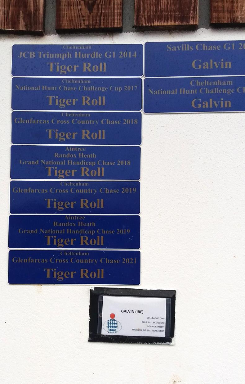 The big-race winning name plates to the right of his door are a reminder for the big shoes the little horse has left to be filled. Five Cheltenham wins and two Grand Nationals. Galvin offers his two to date - a win at the Festival and a Grade 1 success.