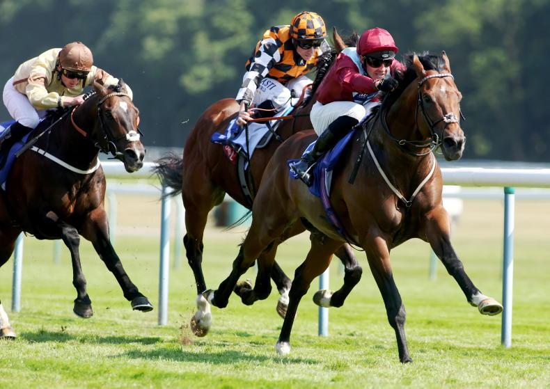 A Group 2 winner over the trip last term, he showed the benefit of a return to seven furlongs on fast ground to get the better of Australian challenger The Astrologist (Leon & Troy Corstens/Ryan Moore) by a length and a half.