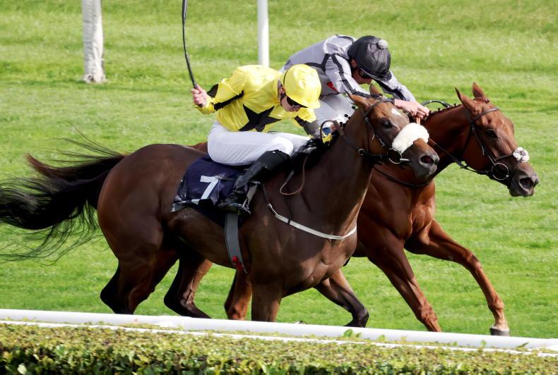 Ryan Moore’s mount came through strongly at the furlong marker and drew away for a comfortable length-and-a-half success over Mo Celita (Adrian Nicholls/Frankie Dettori).