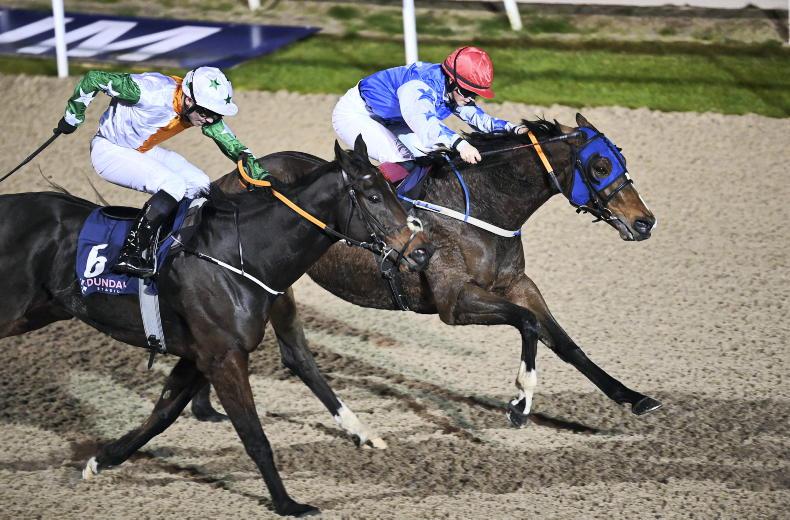 NICOLA Burns steered Sporting Hero to a half-length success in the Now Racing Every Wednesday At Dundalk Handicap.