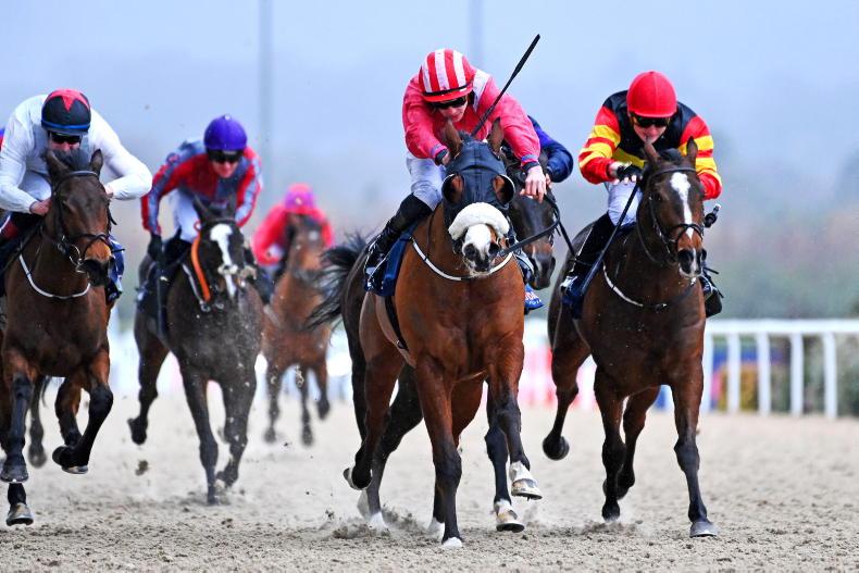 The easy-to-back 16/1 chance was making his Polytrack debut and took to the surface in surging home confidently in the final furlong by a length and a half under jockey Cian Horgan for the Whackey Racers Syndicate.