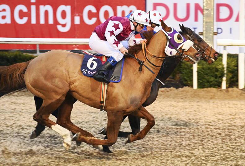 Adam Caffrey produced her to lead inside the final furlong and she forged on nicely to come in by two lengths at 10/3 for The Rocky Horror Partnership. Ado McGuinness said: “She ran a cracker in the all-weather finals in England and that’s where she will be heading, to Newcastle for the mares’ race. I think she has one more run to have here.”