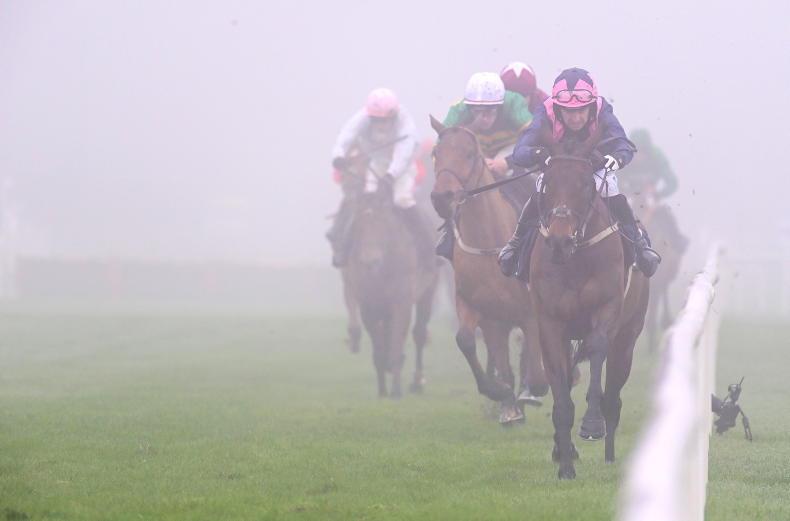 One from the fog... Kopek Des Bordes proved his has a big engine at Leopardstown, and the runner-up Kawaboomga (white cap) is one for the notebook too \ Healy Racing