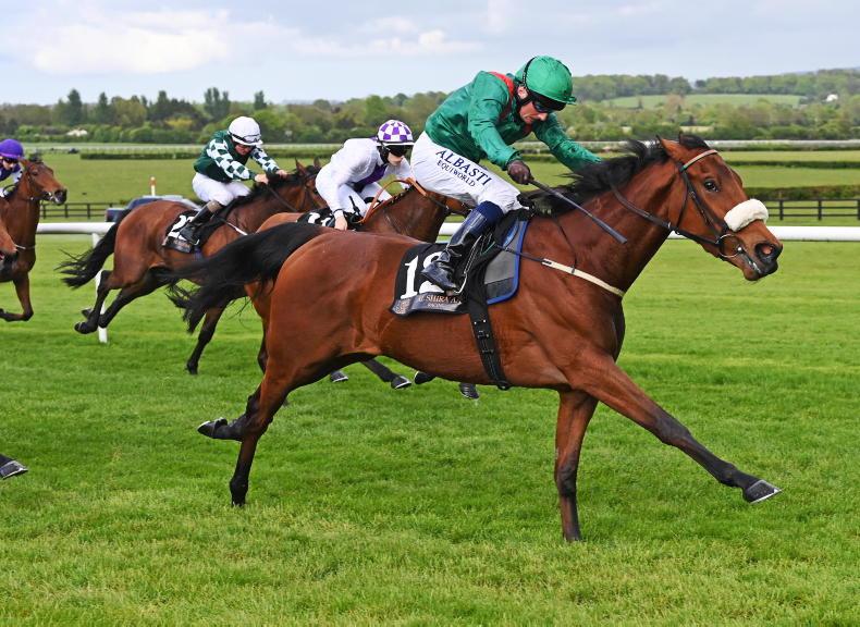 The Dermot Weld-trained filly came with a strong run to lead inside the final furlong. Chris Hayes kept the Aga Khan filly up to her work for a length-and-a-quarter win at 10/1. “She’s been working well and a filly to look forward to,” said Weld. “She’s potentially a stakes filly.”