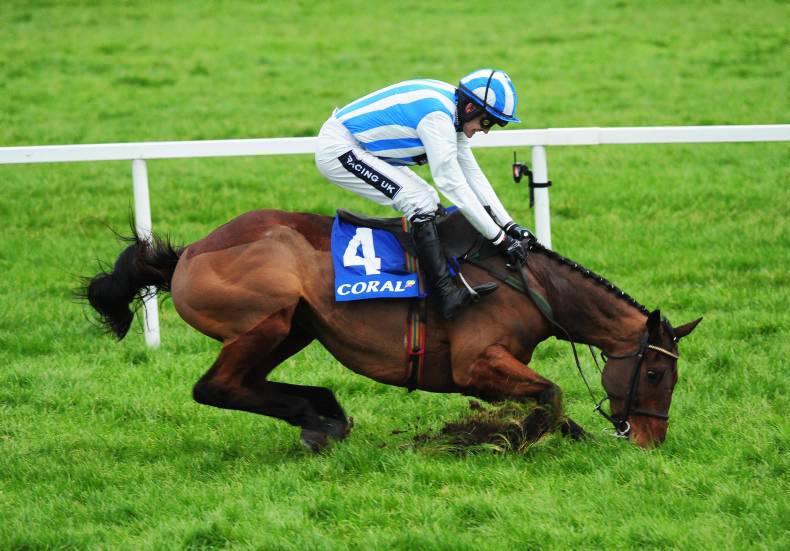 He led all the way and jumped really well until slithering on landing at the final fence and appearing to lose all chance in the process.