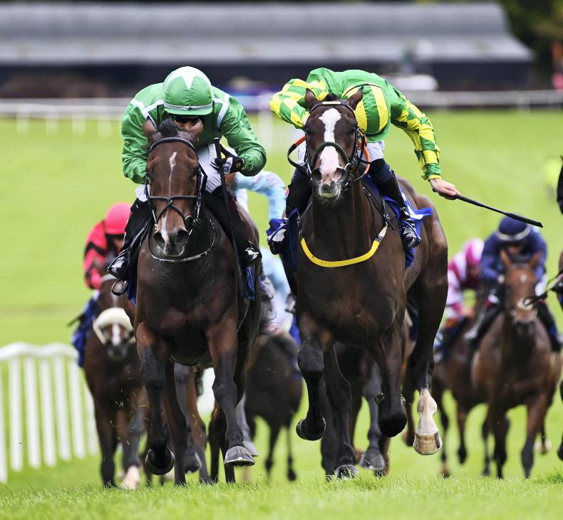 THERE was a dead-heat in the Irish EBF Auction Series Maiden as twice-raced Ritournelle (4/1 joint favourite) was joined on the line by debutante Messerschmitt (28/1) to equally reward cousins – successful jockeys Andrew Slattery and Ben Coen.