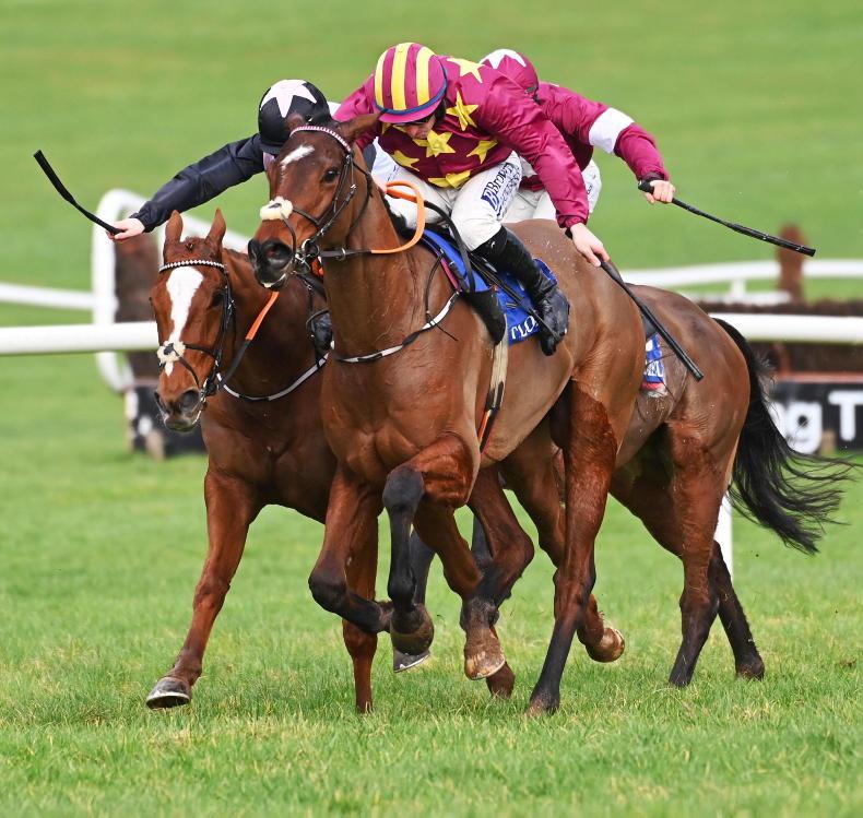The pair then locked horns over the final two flights, with Monty’s Star winning the battle to discard his maiden tag in prevailing by half a length on the line, giving Flanagan a second winner back since his return from a back injury suffered in a heavy fall at Thurles in October.