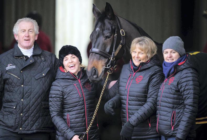 Leopardstown CEO Pat Keogh, Kate Harrington, trainer Jessica Harrington and Emma Harrington with Sizing John at the Leopardstown Launch