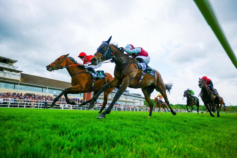 Defiance, (pictured left) finishing behind Bellum Justum in the Betfred Blue Riband Trial at Epsom, is the selection on the Lingfield Derby Trial \ Healy Racing