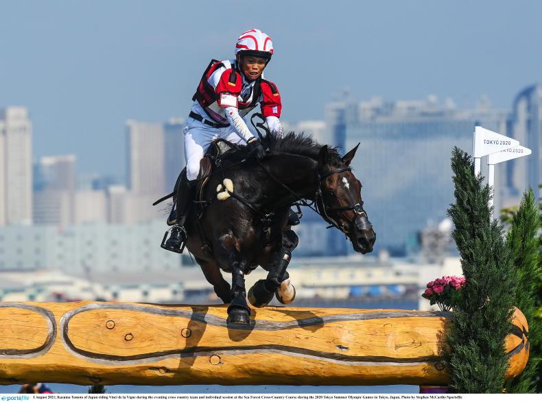 Kazuma Tomoto of Japan riding Vinci de la Vigne during the cross country. The pair finished fourth individually \ Stephen McCarthy/Sportsfile