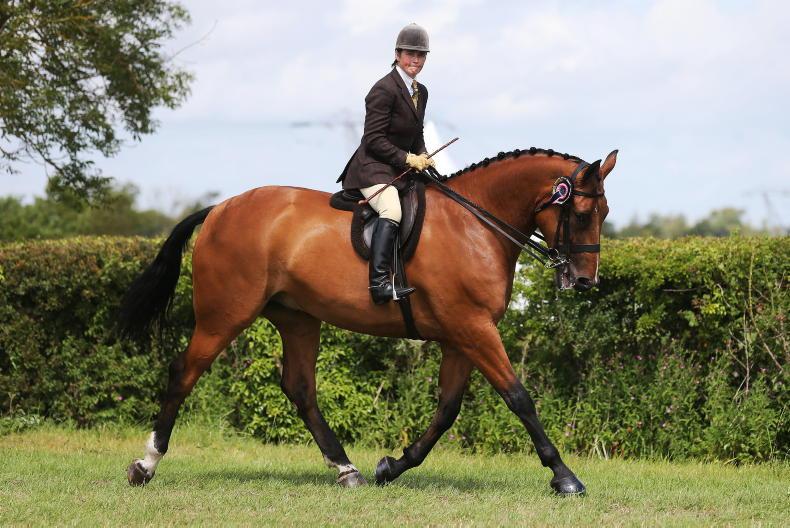Taking the reserve supreme tricolour was Roisin Drury’s middleweight Ballarin Fionn (Mountain Diamond. Ronan Kelly) whose jockey Nicola Perrin also recorded a double with Keith Martin’s small hunter champion Made To Measure.