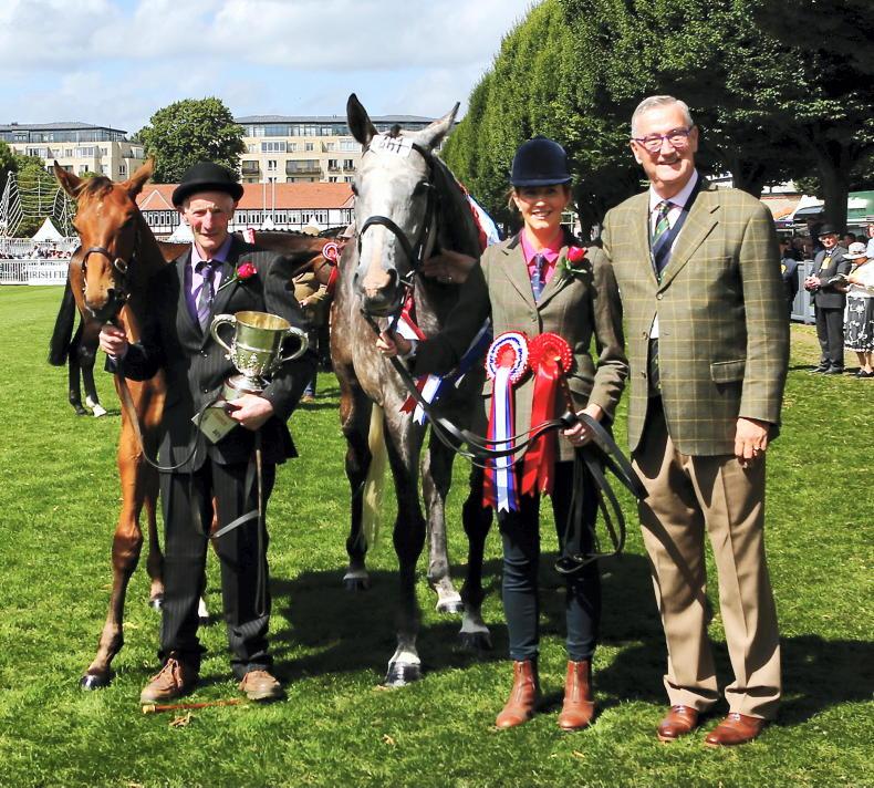 30-plus Years In The Waiting: The Irish Field former editor Leo Powell with Richard Drohan and his daughter Lucy with their Breeders' Championship eventing section champions: Golden Moments, bred by Mosie White and her News Anchor foal \ Susan Finnerty