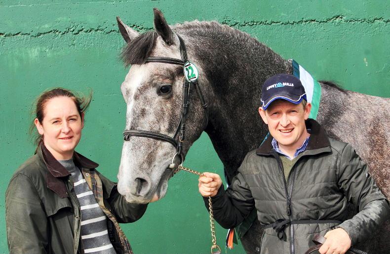 Proud owner moment: Emma Hynes, owner of Hollyrock Grey Hero and Jack Connors at Cavan in March when the Sean Scannell-bred was approved as a Class 1 stallion \ Susan Finnerty