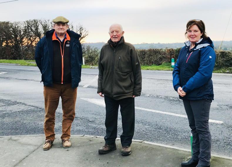 Matthew O'Meara, Tim Heenan (centre) and Jennifer Haverty at Ardcroney crossroads \ Susan Finnerty