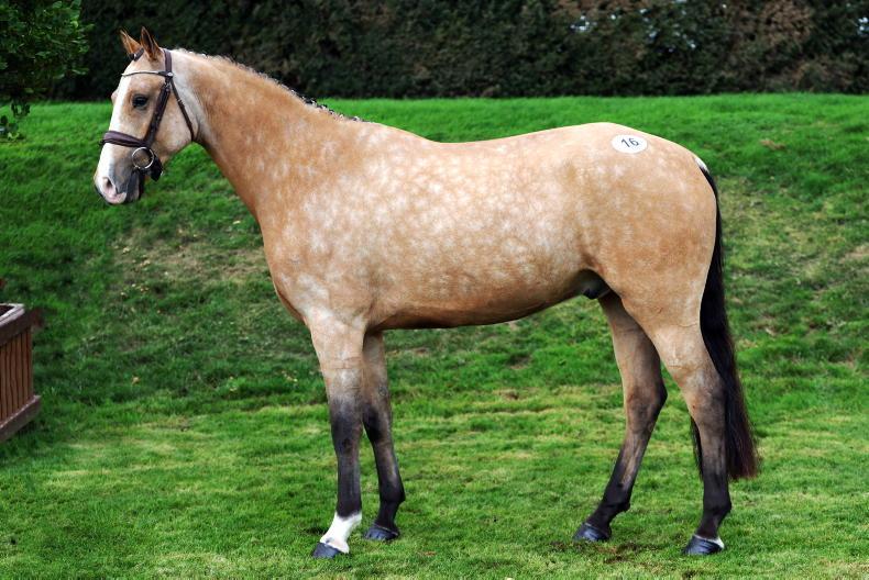 Produced for the sale by Tommy Considine, this bay ISH gelding is one of just two three-year-olds registered on CapallOir by the Anglo European Studbook-registered Greenvale Draco who has jumped up to 1.50m level and, ridden by Tommy Halford, was on the Irish bronze medal-winning team at this year’s European Junior show jumping championships in Fontainebleau. He is out of a Mermus R mare who comes from the family of Loughnavatta Papillo.