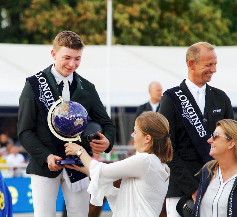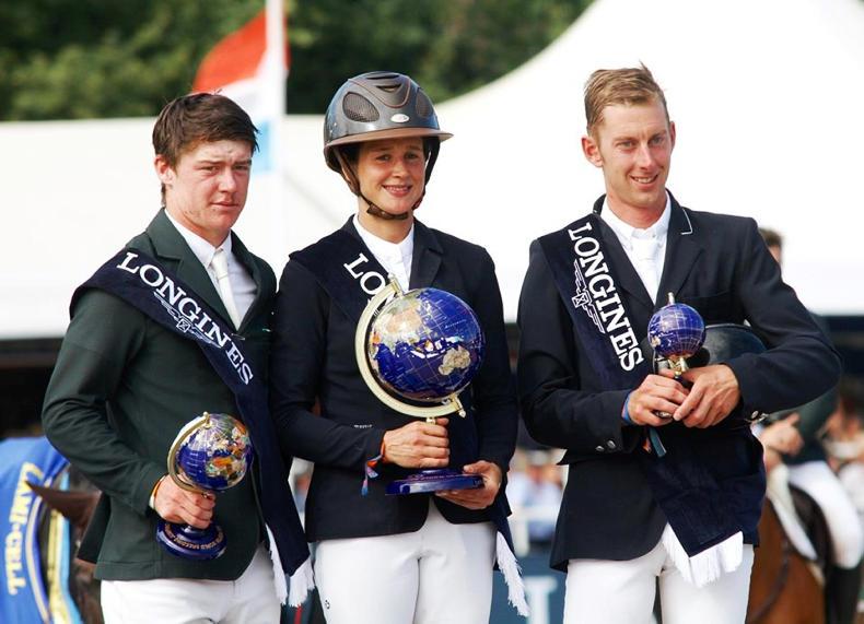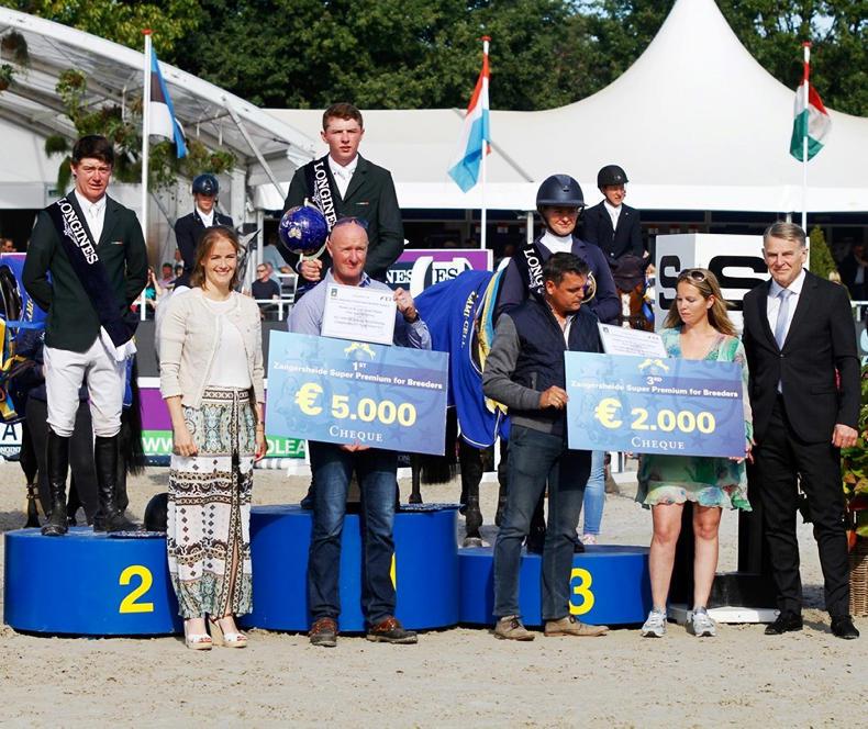 In the curtain-closing seven-year-old final, with Kilkenny’s Seamus Hughes-Kennedy (17) and Cuffesgrange Cavadora (ISH), bred by Eamonn Sheahan, taking the winner's prize when last to go in the jump-off to complete a brilliant World Championships for Irish Sport Horse breeding.