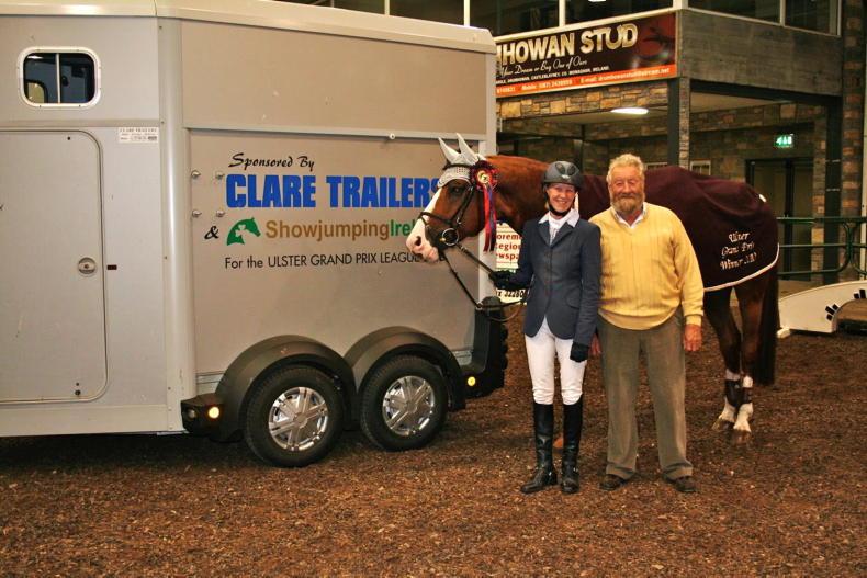 Lisa and Woods Rosbotham pictured with their trailer prize after their stallion Valent (Hors La Loi II) won the Ulster Region Grand Prix League
