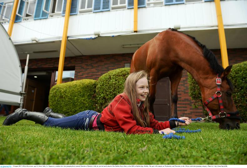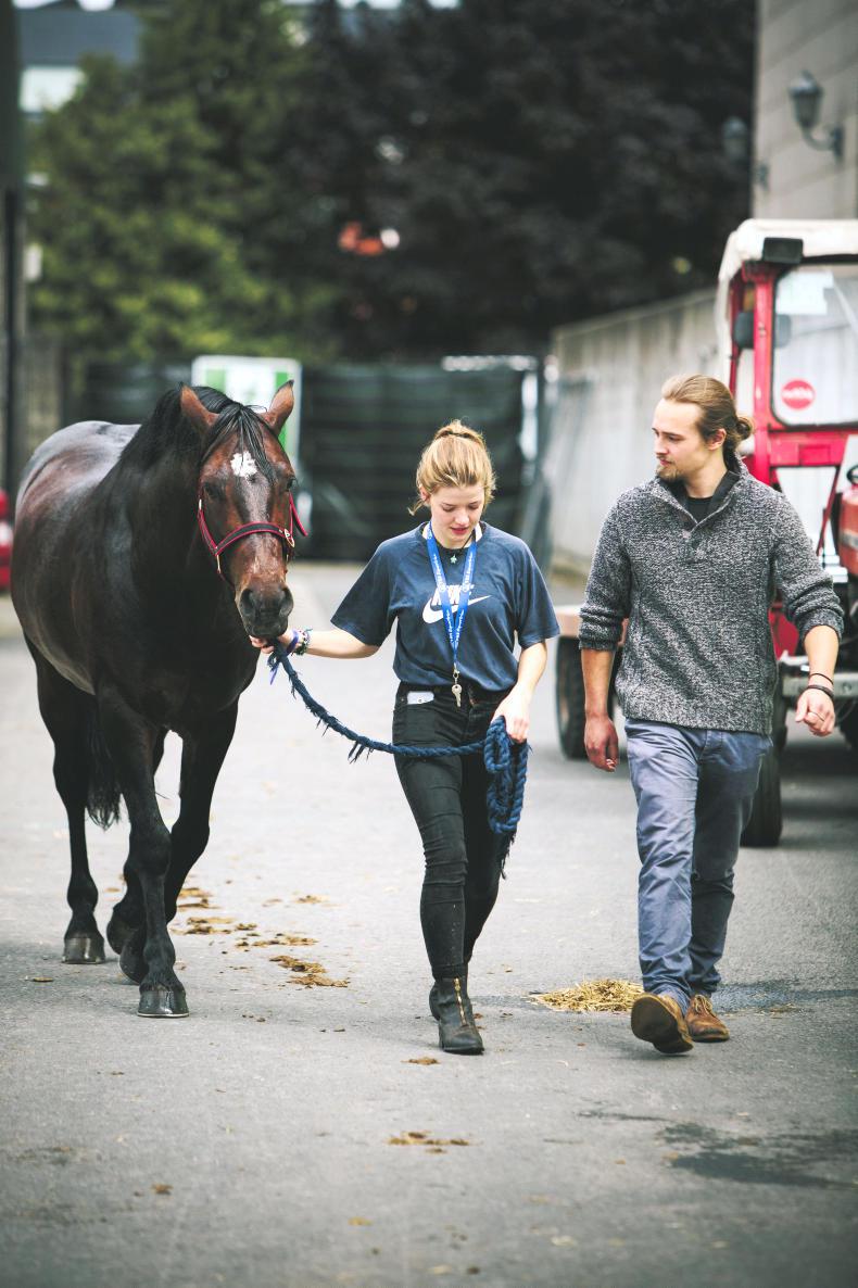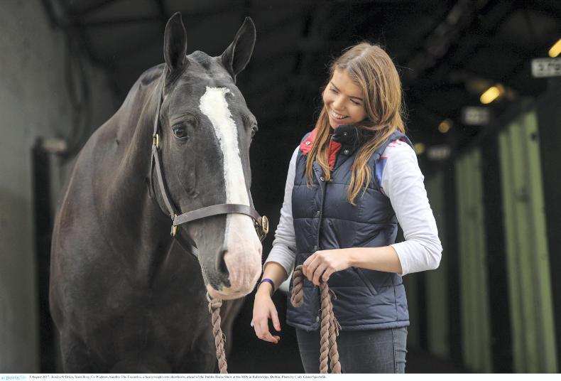 Jessica O'Brien, from Bray, Co Wicklow, with her heavyweight cob The Executive