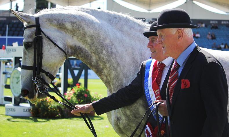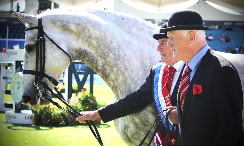 By the KWPN sire Silvano out of a Ringfort Cruise-Coille Mor Hill dam, Pink Flamingo won her class ahead of another extravagant-moving grey: Paul Cleary’s Lady Fassagh, shown by Lorcan Glynn.