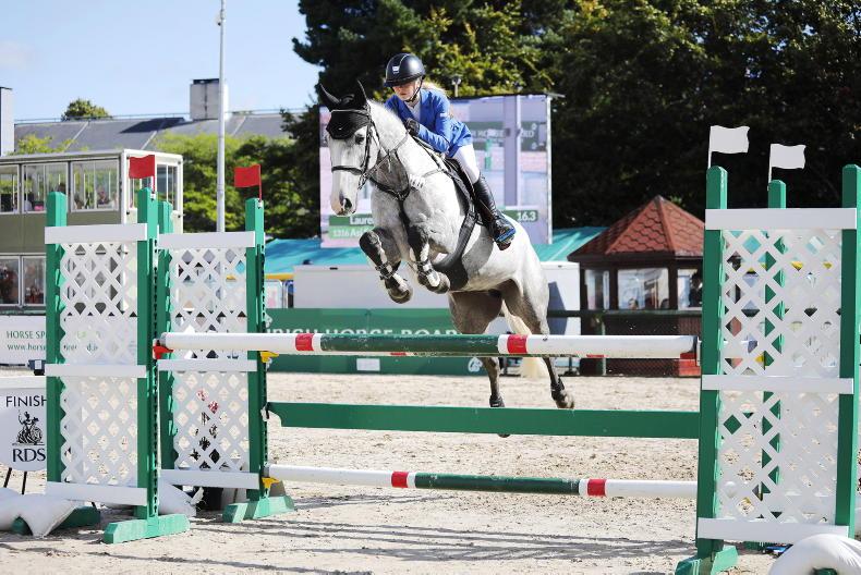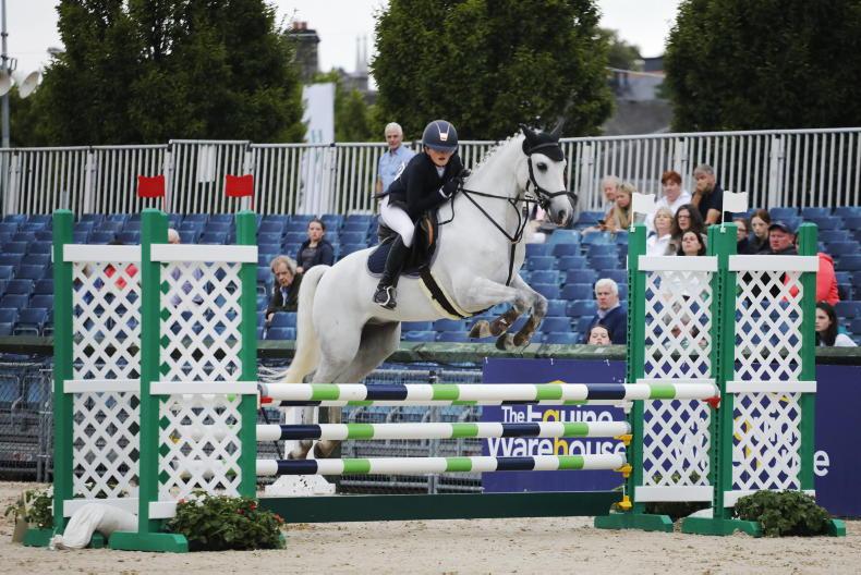 Amelia Durkan and Busy Bee, winners of the Junior Equitation class 89 at the 2023 Dublin Horse Show 2023 \ Jane Emilly Potter jumpinaction.net