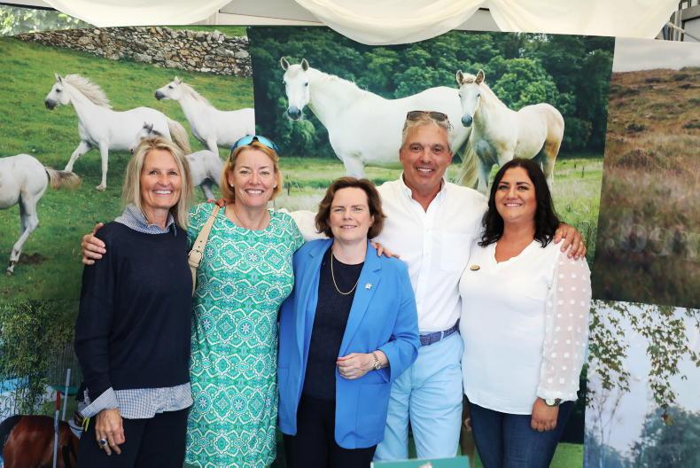 Great day out: Tipperary ladies at Dublin Horse Show last Thursday (l-r) Gillian Murray, Fethard, Sophie Wall, Fethard, (mother of Dorothy Wall on the Irish Rugby Team), Maura Blackmore, Killenaule, (Grandmother of Rachael Blackmore), Yvonne Blackmore Casey, Fethard and Liz Kennedy, Ballynonty