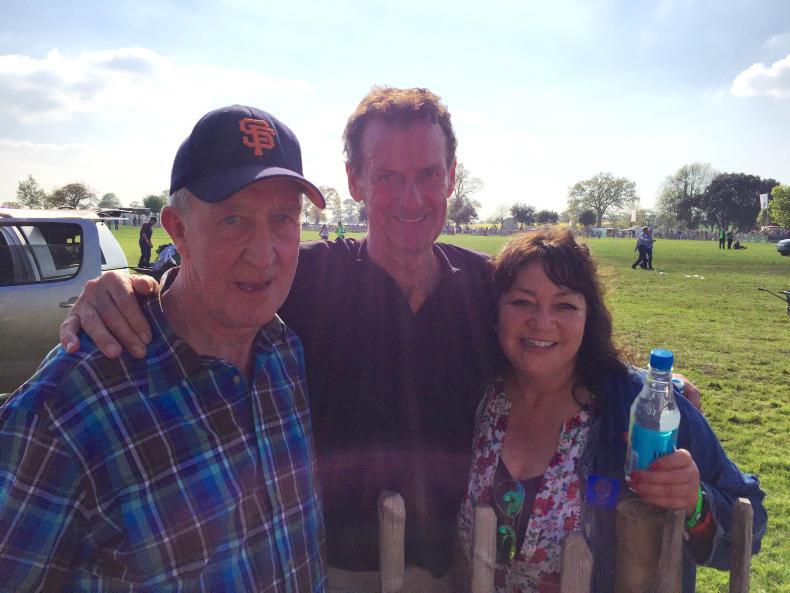 Michael Tighe, breeder of Kiltubrid Rhapsody, with rider Mark Todd and owner Nikki Ryan after the horse finished sixth at Badminton earlier this month