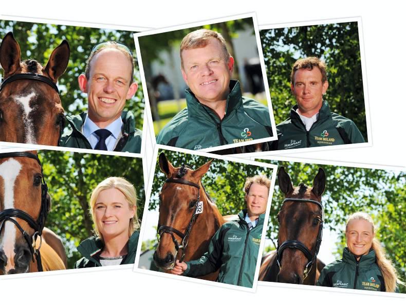 Horse Sport Ireland eventing team manager Nick Turner, flanked by dressage coach Ian Woodhead, saw their side make a very competitive start on Saturday, after both Tipperary's Padraig McCarthy riding Simon Porloe and Clare Abbott riding the Irish Sport Horse Europrince, produced personal best scores to leave Ireland in overnight sixth place.
