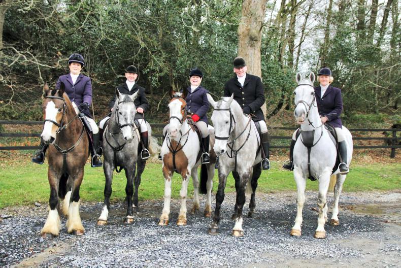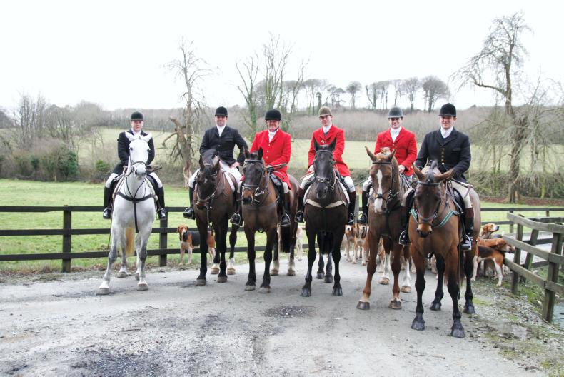 Hunting with the Waterford Foxhounds were Tracy Badham, Paul Lenihan, Faith Ponsonby, Michael Dean and Rosemary Shanahan