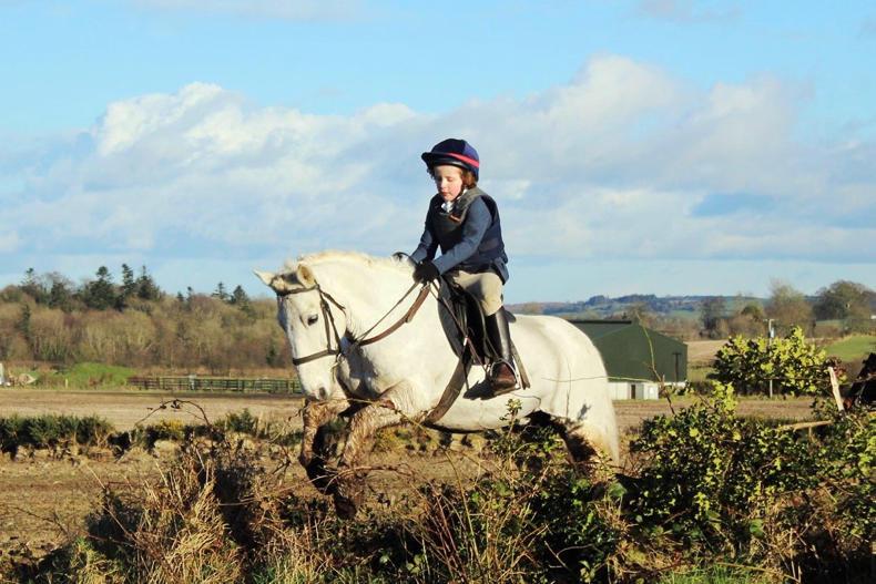 Ben Corrigan (8) and his pony Flash hunting at Carrigbeg with the Carlow Farmers Hunt last Sunday