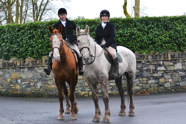 Paul Keogan (left)and his amazing 23-year-old grey mare Maisie still loving her hunting, pictured here ridden by Shauna Smith (right)