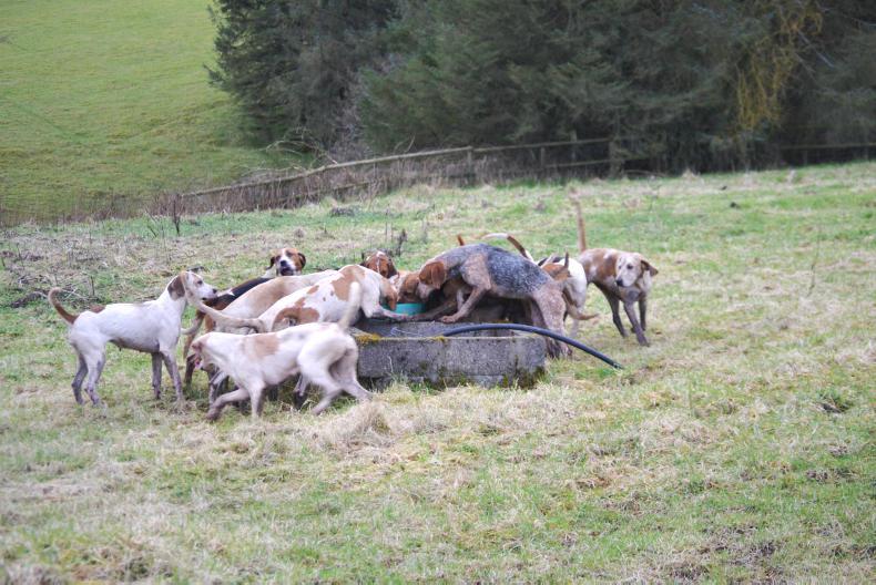 Hunting is thirsty work and the Kildare Foxhounds stopped for a quick drink while hunting at Bishopshill recently