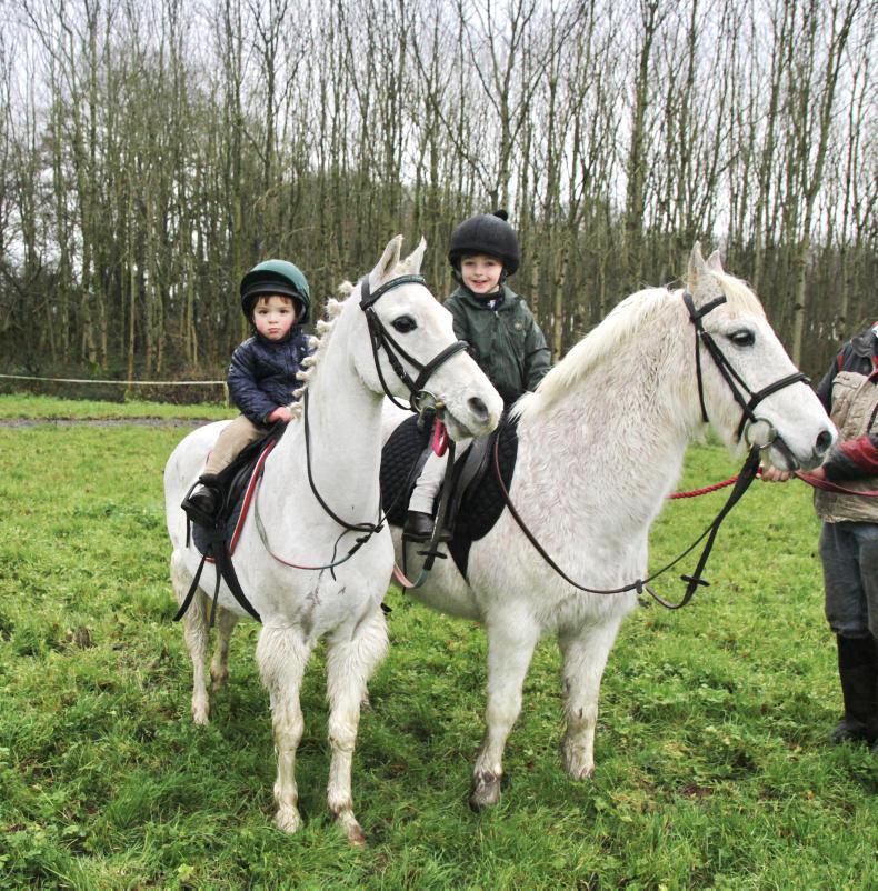 Starting young: Adam Curtin (3) and Jamie Crowe (4) (right) on their grey ponies at the Scarteen mock hunt day