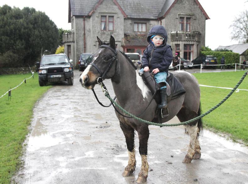 Little Ruairi Purcell and his pony out on the mock hunt with the Scarteens