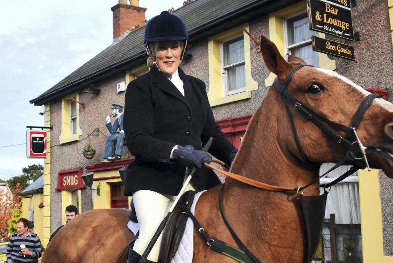 Janet Reilly out hunting with the Louth Foxhounds from their meet at Beaulieu House