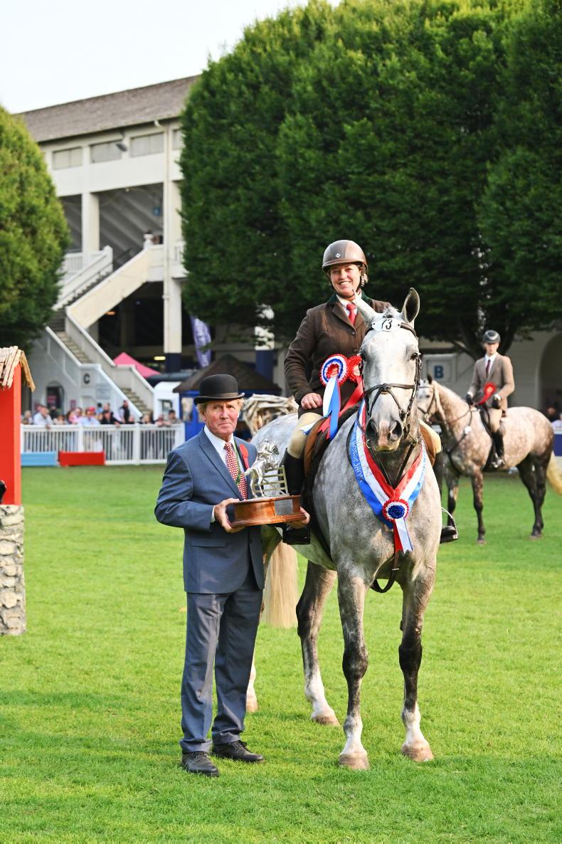 Under the watchful eye of his owner, Lady Perdita Blackwood, the seven-year-old Scrapman gelding Clandeboye landed the seven-year-old and upwards class in the hands of Louise Lyons. The grey, who recently won the Horse of the Year Show horse working hunter qualifier at the Northern Ireland Festival, was bred in Co Down by Miriam Burney out of the Western Light mare Libertias Trueblue.