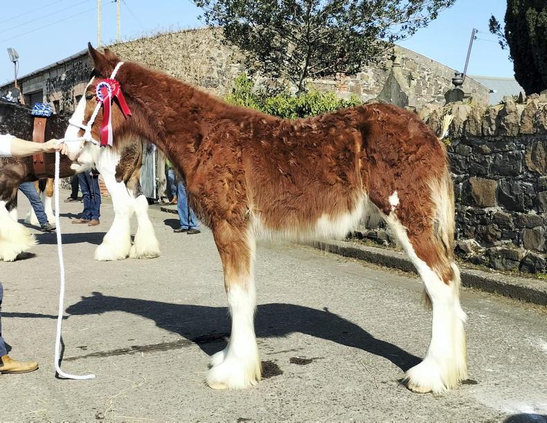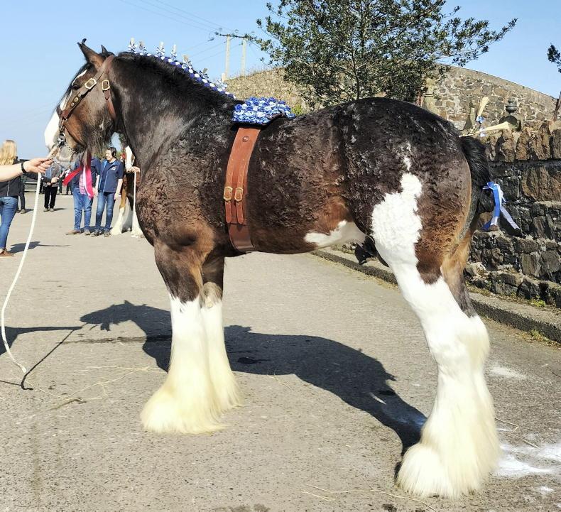 AS throughout the country, the sun shone on the recent parade and show of male Clydesdales at the Livestock Market in Kilrea, Co Derry where judge Jim Rochead, a past president of the Clydesdale Horse Society, awarded premiums to the two stallions forward.