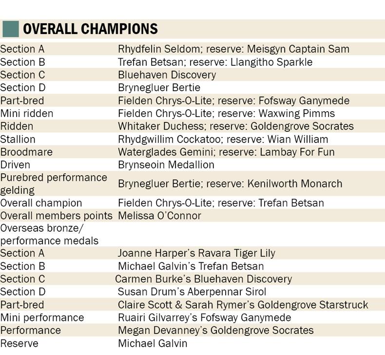 The first section to be recognised was the Welsh Section A’s with Co Wicklow exhibitor Laurie Kearon taking the senior section with her home-bred Ballinacarrig April Sapphire, and Laura Ann Downey getting the perfect birthday present by taking the youngstock and overall Section A award with the yearling Rhydfelin Seldom.