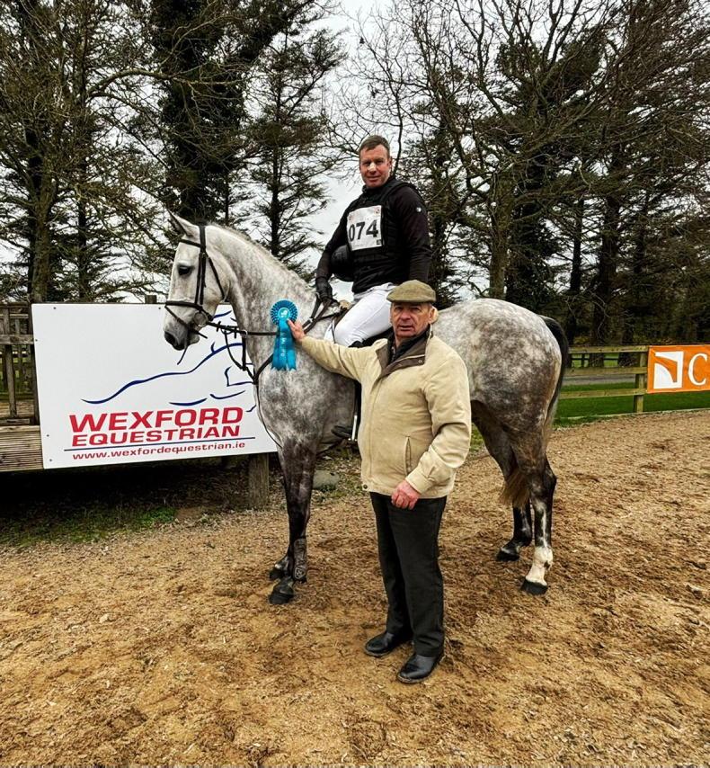 Stonewall Trixie and Patrick Byrne, winners of the six and seven-year-old 6/7 Balmoral qualifier at Wexford Equestrian, being presented by judge Johnny Coyle \ Orla Roche