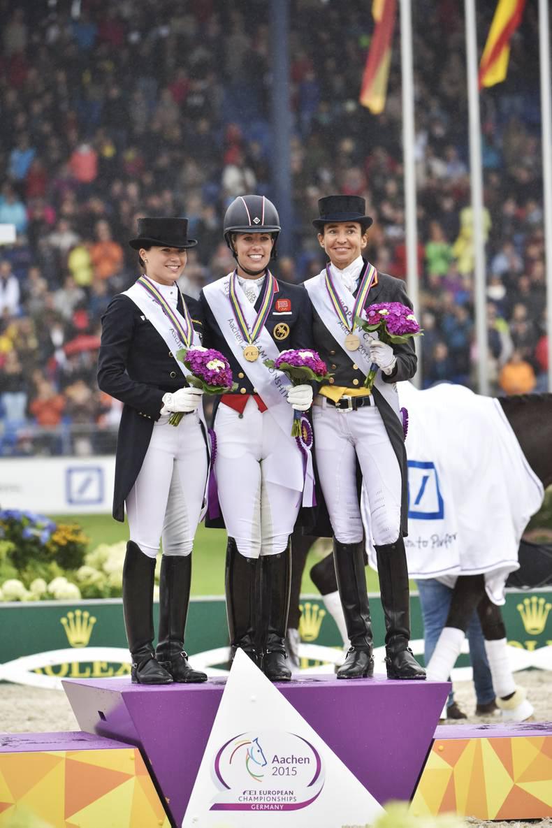 Dujardin and her super-star Valegro clinched the Grand Prix Special gold last Saturday, setting a new European championship record score of 87.577, overtaking the 85.699 they set in Herning two years before. There was plenty for the host nation to celebrate too when Germany’s Kristina Bröring-Sprehe took silver with Desperados FRH, while The Netherlands’ Hans Peter Minderhoud and Glock’s Johnson TN took bronze. However it was bitter-sweet for the Dutchman, as team-mate, Edward Gal, who lifted The Netherlands to team gold on Thursday, was eliminated when last into the arena with Glock’s Undercover.